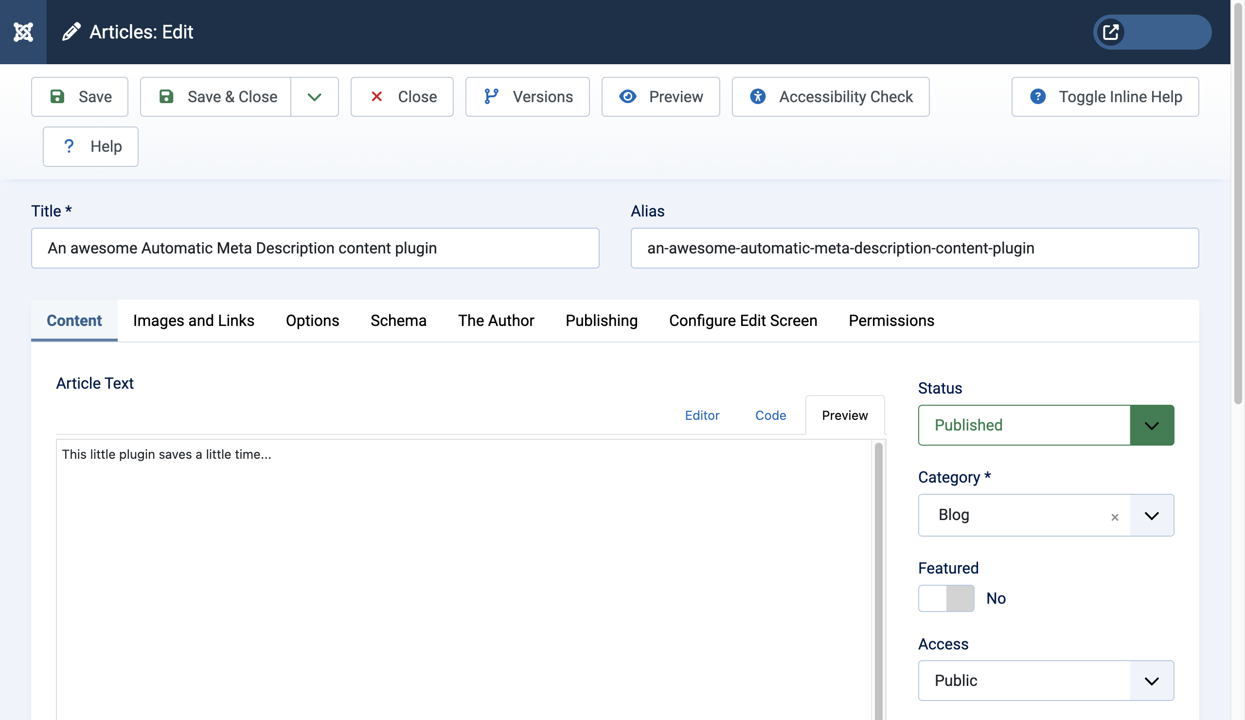 - Each time you save an article the Title of the article and the first 140 characters of text will be used to generate the meta description for your article.
